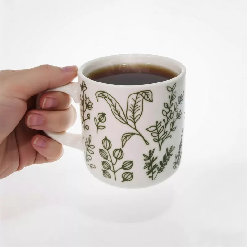 1. Ця кухоль має простий і природний зелений ботанічний принт як центральний елемент: