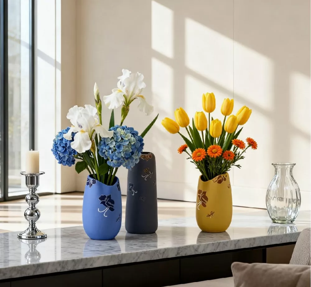 Ця серія керамічних ваз вміло поєднує в собі класичний шарм, ручний розпис і сучасні життєві потреби. Вони служать і практичними квітковими контейнерами, і колекційними витворами мистецтва, наповнюючи житлові приміщення елегантним теплом тисячоліть майстерності.